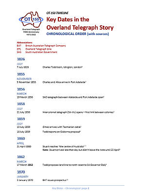 commitment to build the Overland Telegraph Line. The list ends in 1872, when the Line was finally completed.
